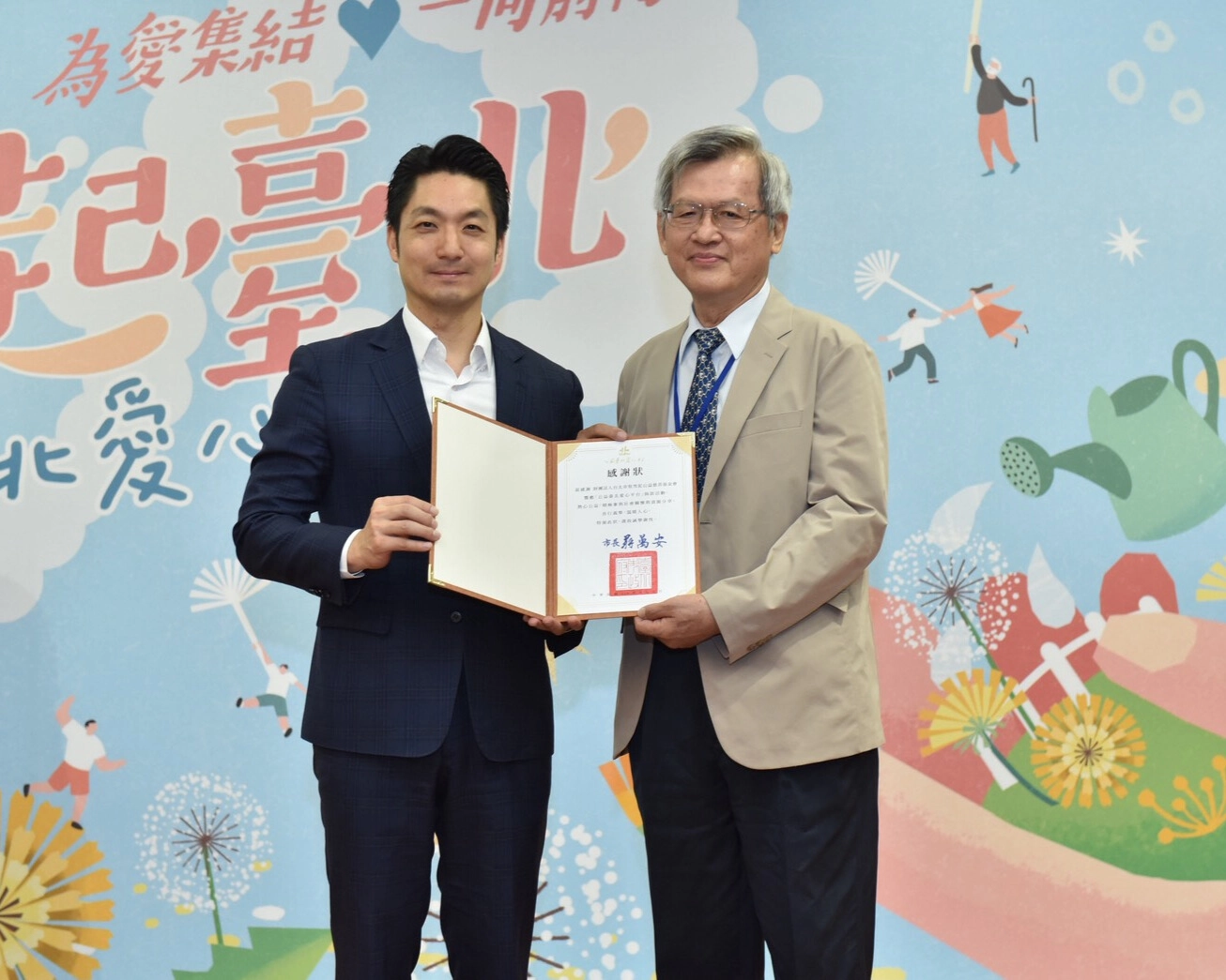 今日活動中,本會由蔡本源董事代表上台,並非常榮幸獲得臺北市市長蔣萬安親自頒發感謝狀,肯定本會長期在公益領域的努力與付出,這份榮耀與鼓勵,我們深感珍貴,也將化作前行的動力。