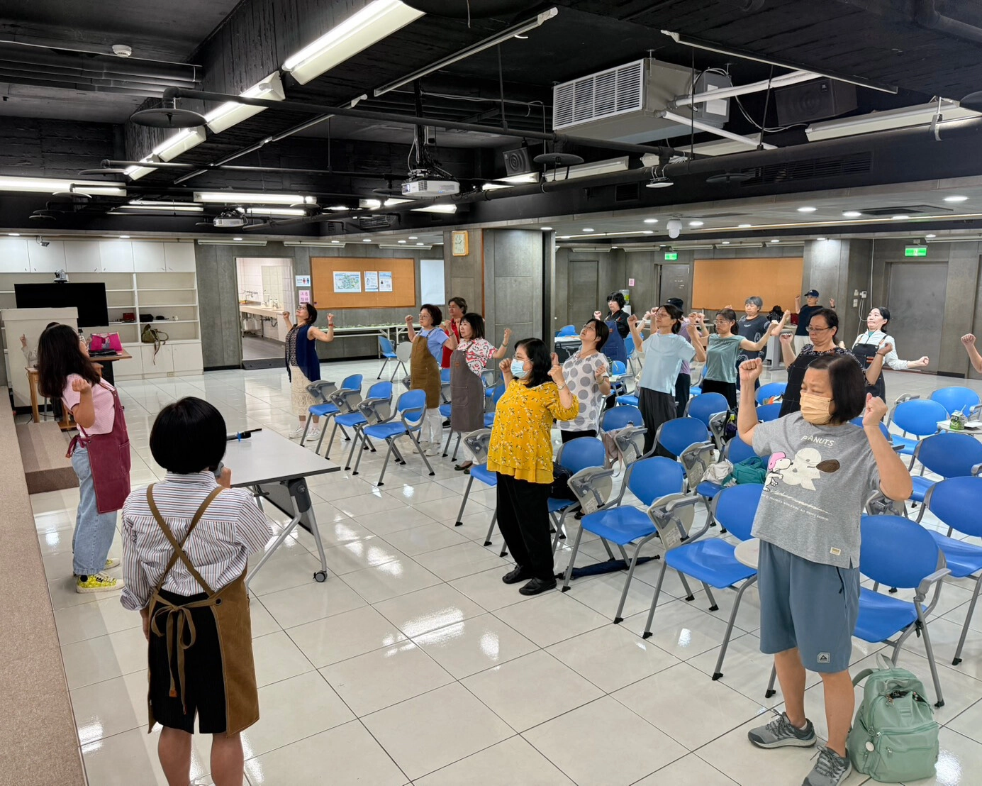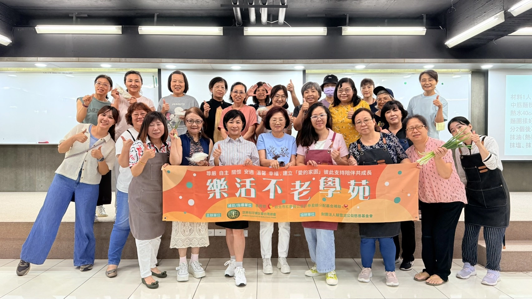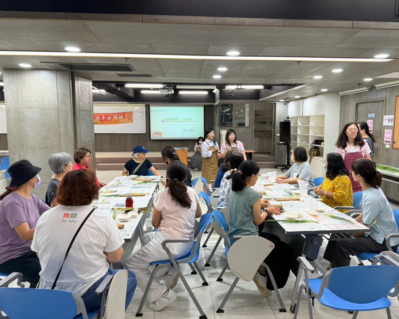 除了文化分享,學員們也跟著老師活動筋骨後,展開親手體驗「蔥餅手作」的樂趣,從揉麵、拌蔥到包裝,感受食材在手中變化的過程。現場大家邊動手邊交流,笑聲與討論聲不斷,最後將親手完成的厚蔥餅帶回家烹飪享用。