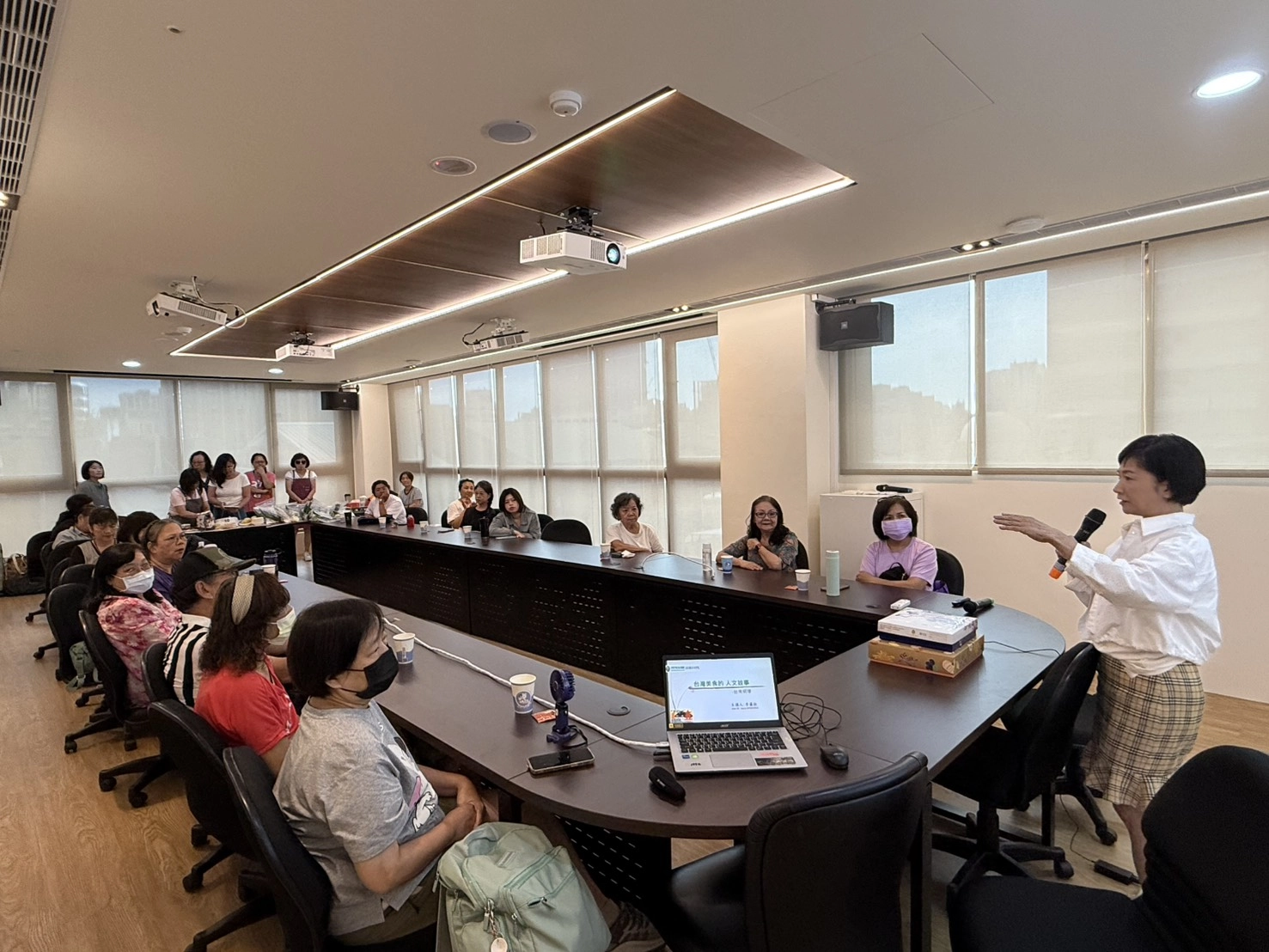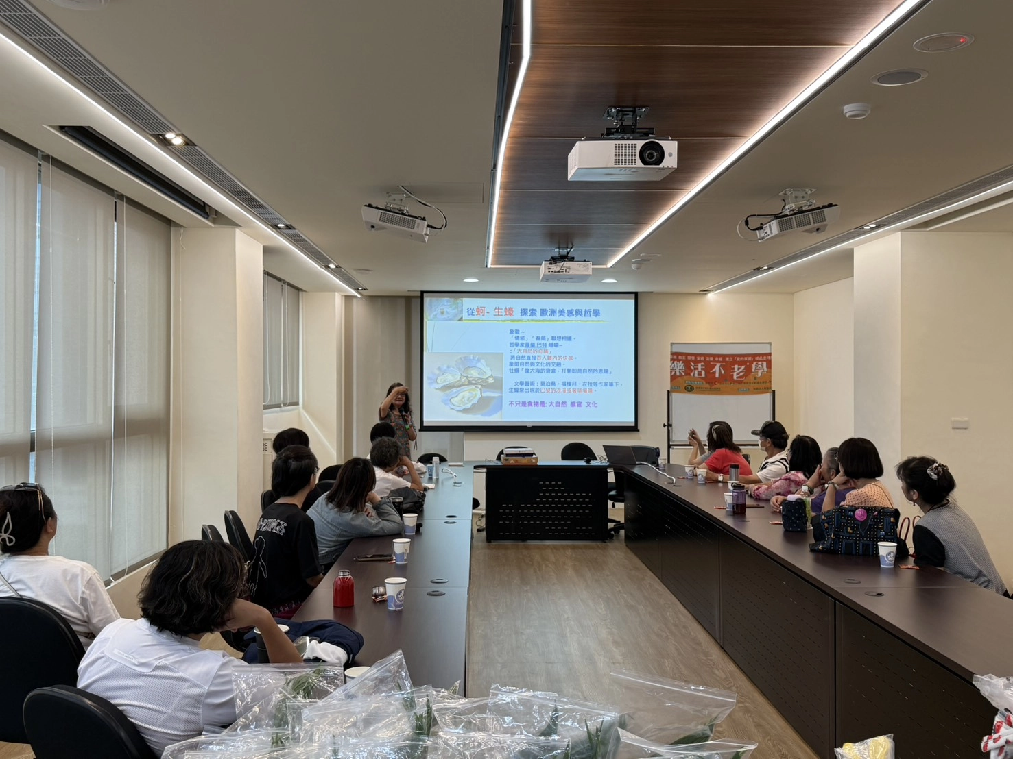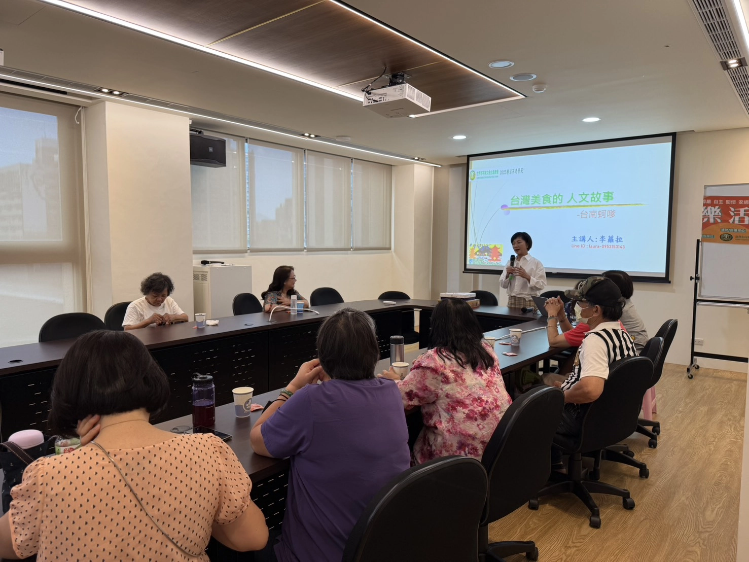 課程以「台南蚵爹」為主題,講師透過簡報介紹府城飲食文化與建築人文。 -