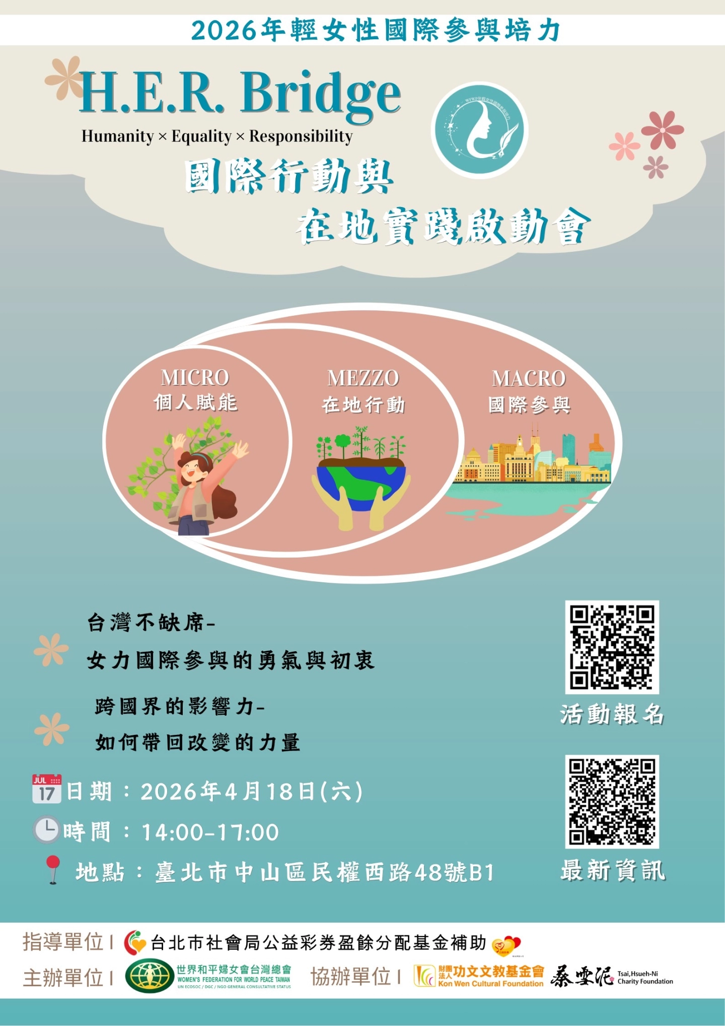 台北市蔡雪泥公益慈善基金會長期關注女性培力與教育發展,這次很榮幸支持「H.E.R. Bridge:國際行動與在地實踐啟動會」,陪伴新一代女性從在地出發,走向國際,再將影響力帶回台灣 🌍