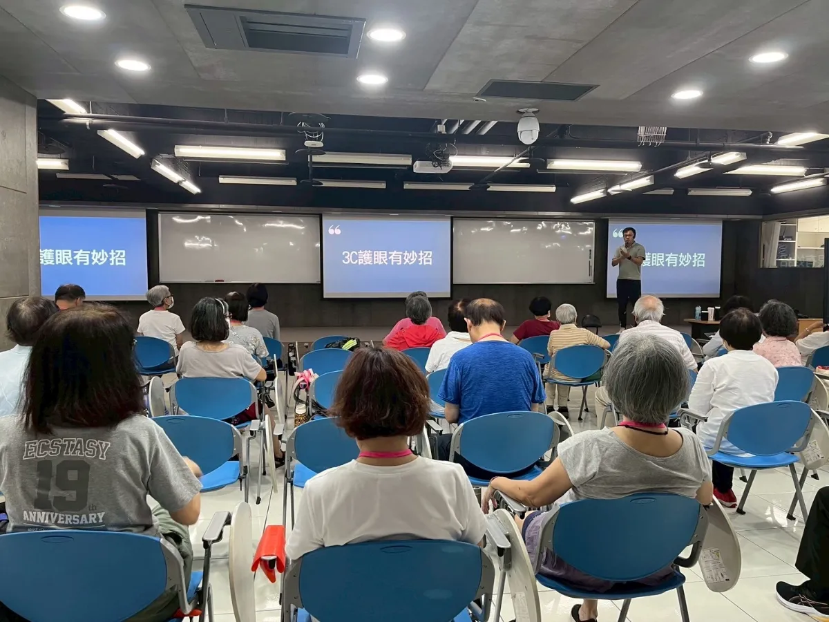 本會協辦以「樂活律動+護眼操動起來 3C護眼有妙招」為主題於7/7(一)圓滿完成。課堂剛開始,老師放著音樂帶動學員們律動,兩人一組進行腿部彈力帶肌耐力訓練,