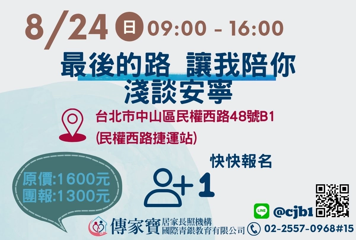 - 本會並提供報名資訊給課程主辦單位(傳家寶國際青銀教育有限公司私立傳家寶居家長照機構)。
